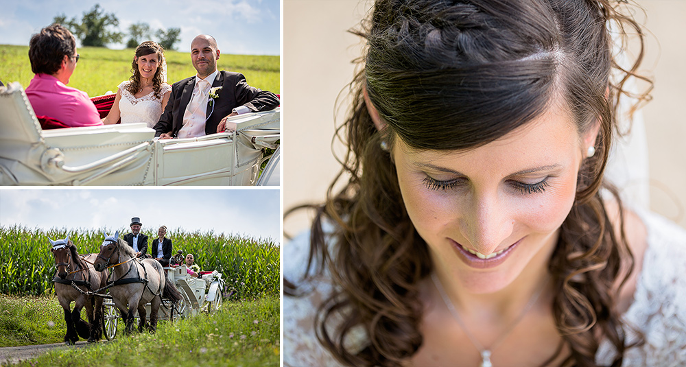 Mit weißer Kutsche fuhren Melanie und Markus zur kirchlichen Trauung vor. Die Portraitaufnahmen haben wir in Erlaheim gemacht, wo auch die Trauung selbst stattfand. Nach dem Sektempfang habe ich die Festhalle im Remise Hechingen fotografisch festgehalten. Das Brautpaar hat noch bis spät in den Morgen hier den schönsten Tag des Lebens gefeiert!