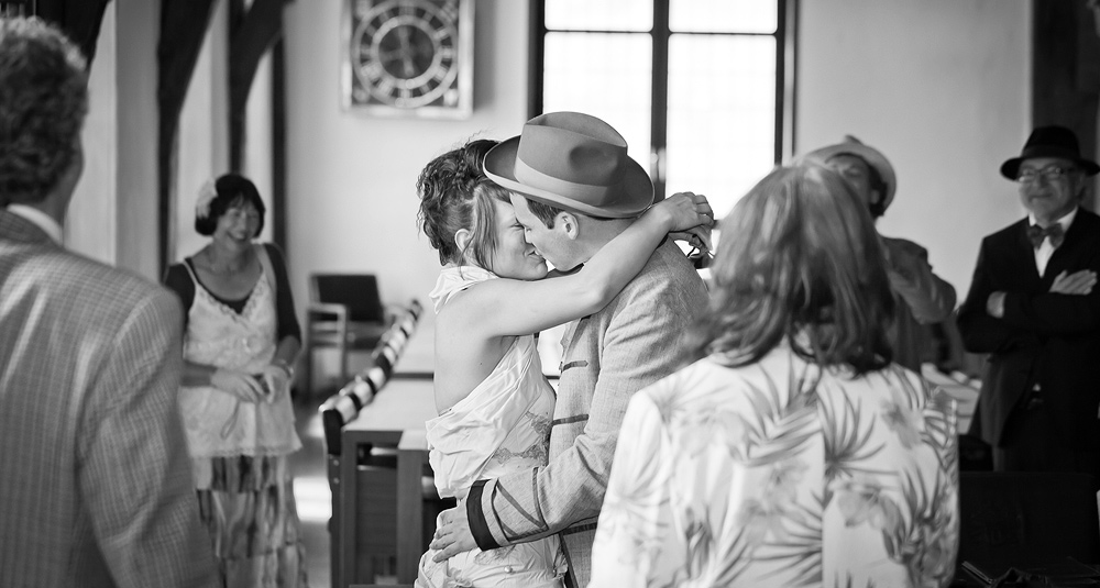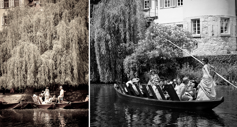 Ein bärenstarkes Pärchen dreht voll auf. Dies ist die erste Hochzeit, auf der ich das Paar über 14 Stunden lang begleitet habe. Ein Tag vor der Hochzeit habe ich den Anruf erhalten mit der Frage „Hi, wir heiraten morgen, kannst du uns fotografieren?“. Die Trauung mit anschließender Kahnfahrt um die Neckarinsel fand in Tübingen statt. Gegen Nachmittag wurde dann auf dem Schloß Roseck in Tübingen bis spät in den Morgen hinein gefeiert. Eine unvergessliche Hochzeit auf der Braut und Bräutigam selbst als Band auch noch musikalisch das Schloß zum beben gebracht haben.