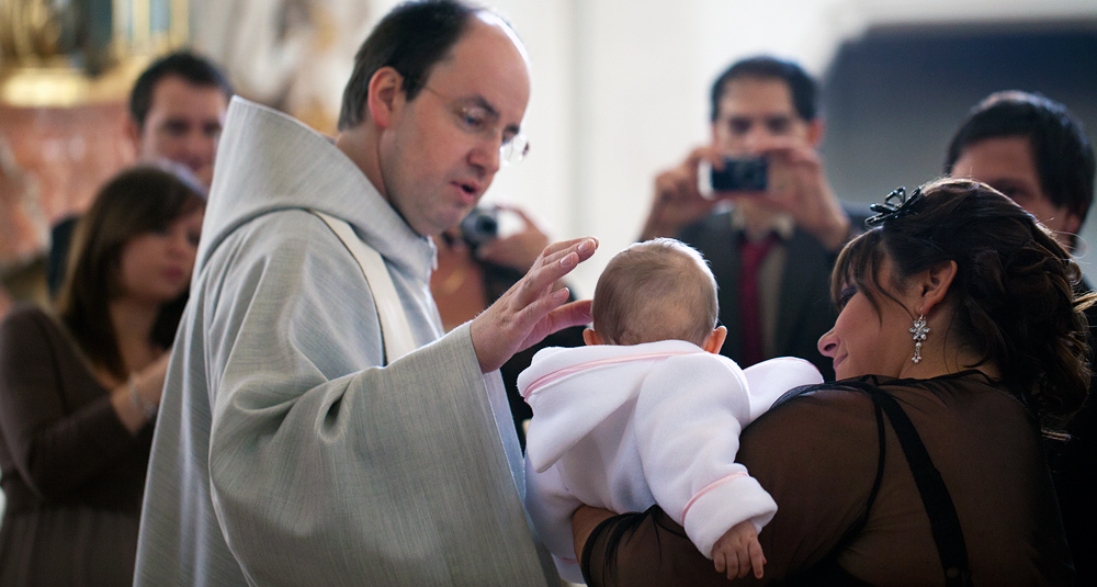 Ich hatte letzten Samstag (30. April) einen Wochenendausflug zum Kloster Beuron im Donautal gemacht. Nach einem kurzen Gespräch mit einem Ordensbruder erfuhr ich, dass eine Taufe bevorstand und ich konnte keinen Fotografen vor Ort erkennen, der die Feierlichkeit festhalten würde. Ich kam ins Gespräch mit den Eltern Elena und Kevin und bat Ihnen spontan an, ein paar Fotos während der Taufe aufzunehmen. Beide waren sehr froh über diese Situation und auch bei der heutigen Übergabe der Bilder dankbar für die über 270 gemachten Fotos. Mir hat es auch sehr viel Spaß gemacht und ich hoffe, wir bleiben auch weiterhin in Kontakt, denn es ist eine sehr nette, große! Familie. Aufgenommen mit 100 mm Festbrennweite.